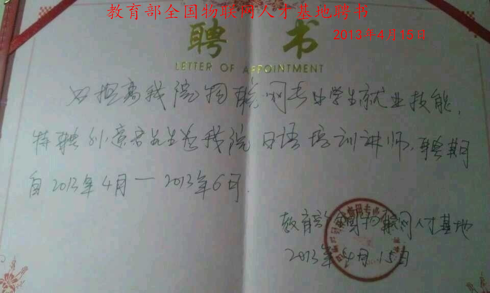 2013年4月-2013年6月 教育部全国物联网基地;日语讲师