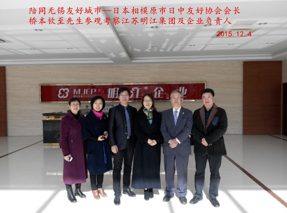 2015年12月 陪同无锡市友好城市--日本相模原市日中友好协会理事桥本钦至会长及政府领导前往参观江苏明江集团及无锡企业家协会代表们;日语随行翻译