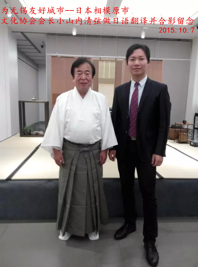2015年10月 无锡市友好城市--日本相模原市政府友好交流访问团访问无锡;日语外事翻译(期间为相模原市中日友好协会理事、相模原文化协会会长及副会长、美术协会会长做了即席翻译。并与相模原市副市长、议会议长等友好交流并合影留念。)