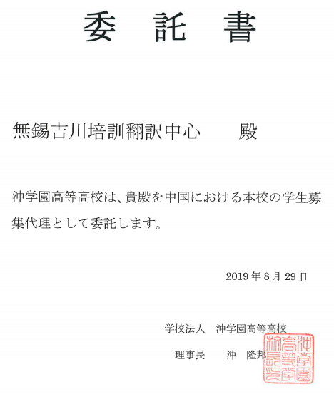明日叶(吉川旗下品牌)与日本冲学园高级中学之缘(被授予招生委托书):