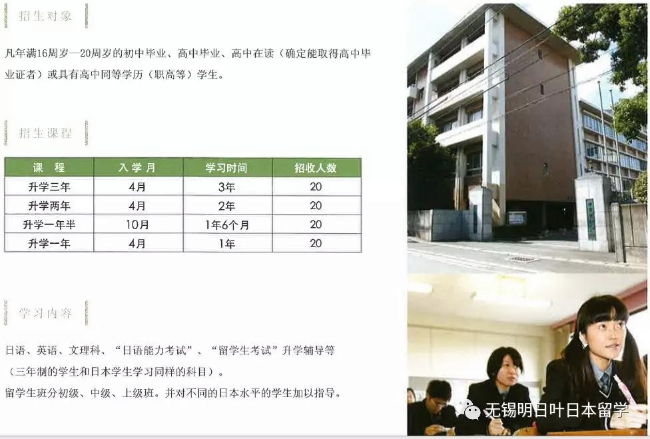 学校设有专们的老师负责中国留学生高考、选校等各方面的问题,还会对成绩优异的学生实行推荐入学制度(比如:大学入学考试免除,大学学费全免或半免等)(无锡市申请日本留学--明日叶)