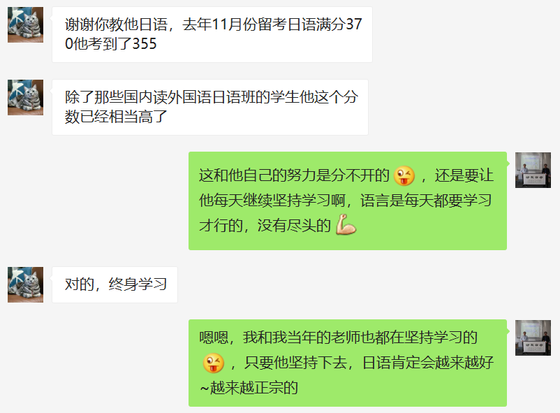时光如梭,上一次看到小吴的时候,已经是二三年之前了,当时他报名的是吉川日语一对一的VIP课程,每次上课的时候都非常认真,能够按照完成吉川老师布置的日语作业,虽然在日语学习方面他不算特别聪明,但是他非常勤奋,从来不迟到早退,别看他长得高高大大的,学习起来是非常细腻的,一有不会的地方就会问老师问题。(无锡日本留学咨询--明日叶)