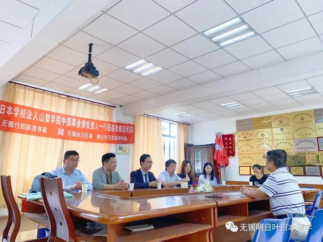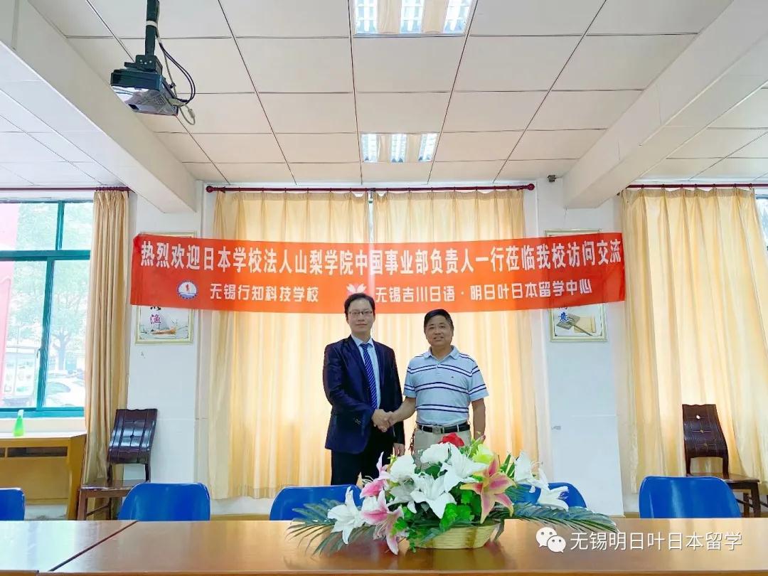 2020年9月22日上午,日本山梨学院大学驻华事务所所长一行3人,在无锡吉川日语-明日叶日本留学中心孙意君校长和市场部周部长施部长的带领下(无锡日语留学班--就在明日叶),共同前往明日叶优秀合作校-无锡行知科技学校参观交流,访问团一行受到了行知学校执行校长-徐校长以及师生们的热烈欢迎。