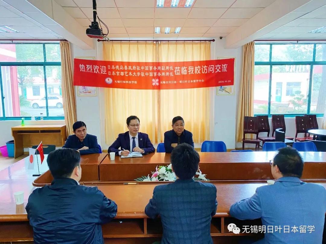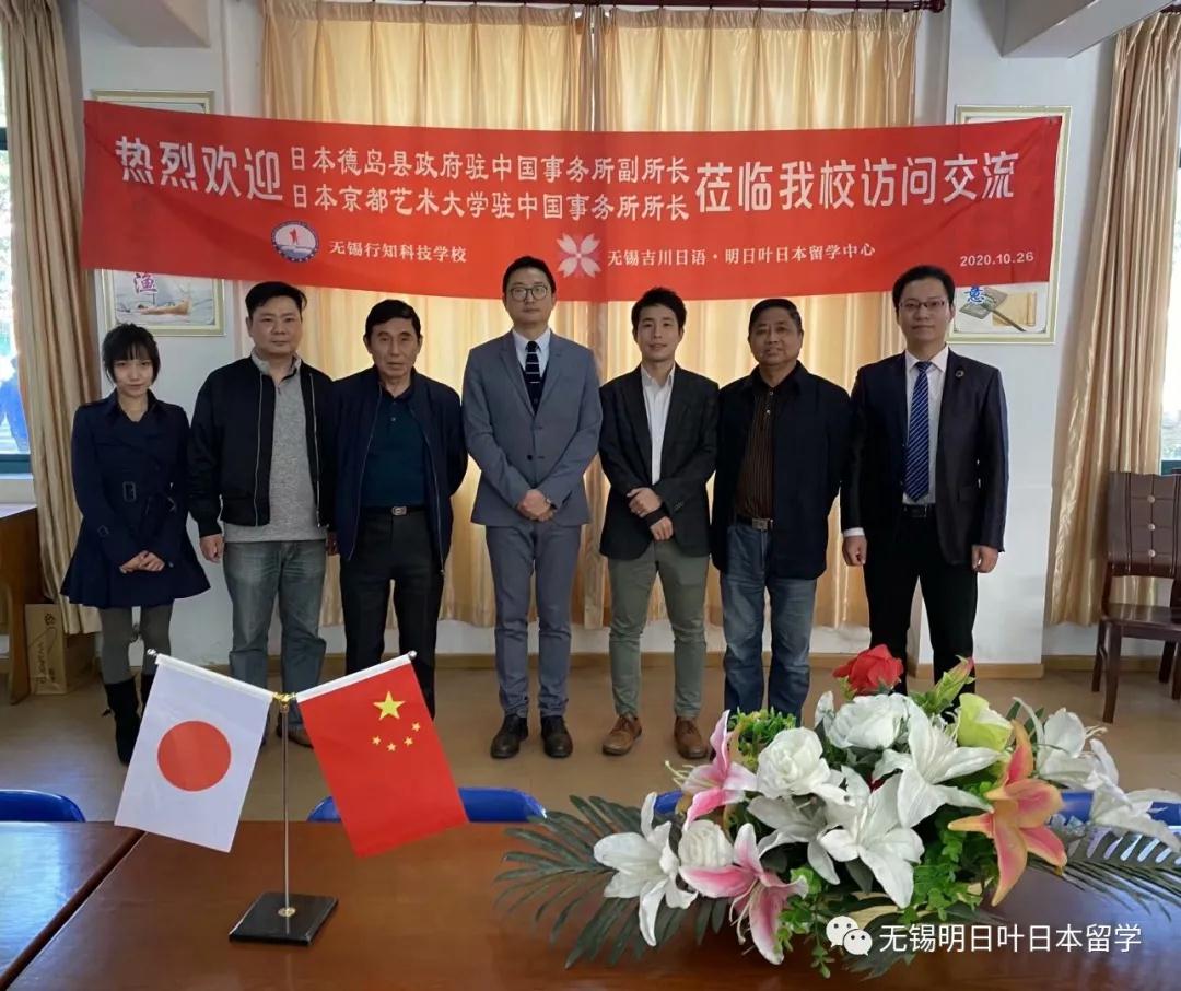 2020年10月26日,明日叶日本留学中心特邀日本德岛县政府驻华事务所-涩谷俊副所长和京都艺术大学驻华事务所所长刘昊星老师前来无锡,在明日叶孙意君校长的亲自带领下,(无锡日本留学哪家好--明日叶)老师们一同前往明日叶兄弟学校-无锡行知科技学校进行参观交流,受到了行知执行校长-徐校长的热情欢迎。